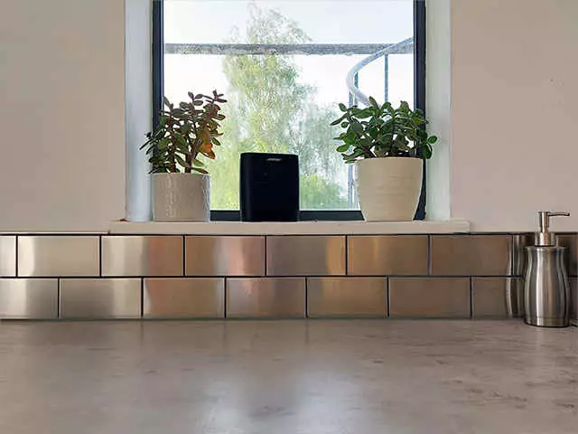 Silver Stainless Steel Subway Tile as Kitchen Splashback 230701